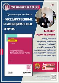 презентация учебника «Государственные и муниципальные услуги» профессора Брянского филиала Президентской академии, Заслуженного работника культуры Российской Федерации, кандидата социологических наук Ф. И. Белозора. Подробнее