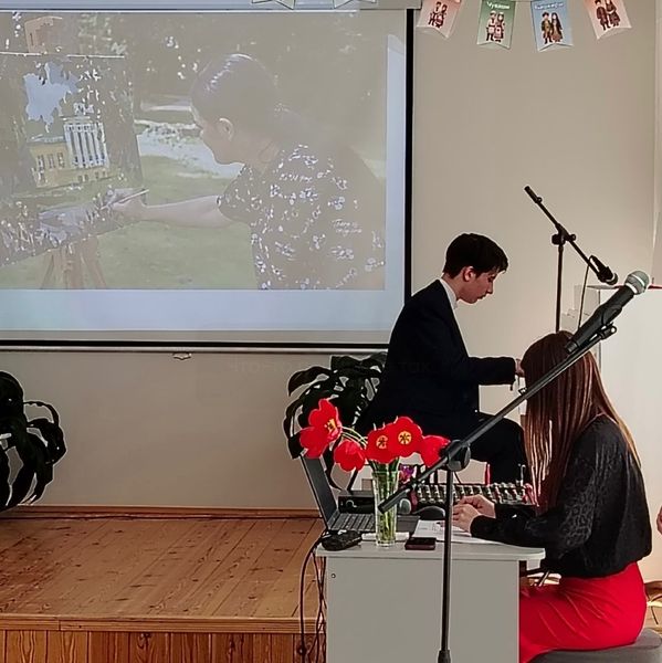 Атмосфера праздника становилась всё более душевной. Гости не просто любовались шедеврами живописи — они погружались в многогранный мир искусства. Учащаяся средней школы № 1 Алина Товпеко прочла поэтическое творение Л. Ткачёвой «Учитель. Наставник. Художник. Творец». Строки, воспевающие созидательную силу искусства, звучали особенно трогательно: они напоминали о том, что за каждым шедевром стоит человек, чья душа стремится поделиться светом с миром.