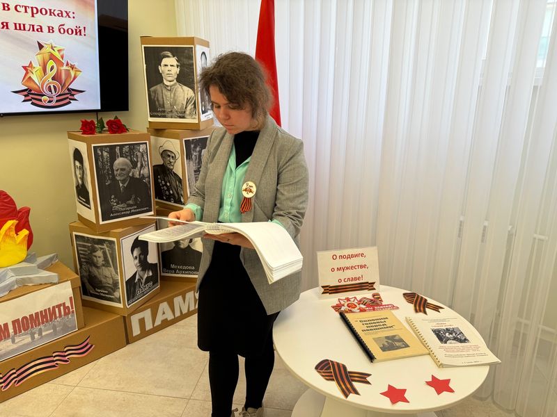 29 апреля 2026 года в муниципальном бюджетном учреждении культуры «Суражская районная межпоселенческая библиотека» в преддверии Дня Великой Победы прошла литературно музыкальная гостиная «Мелодия в строках: когда песня шла в бой», где прозвучали голоса истории и легендарные песни, которые стали трогательным напоминанием о подвиге народа. Участниками мероприятия стали студенты Суражского педагогического колледжа им. А.С. Пушкина (руководитель: Петроченко О.В.) и читатели библиотеки.