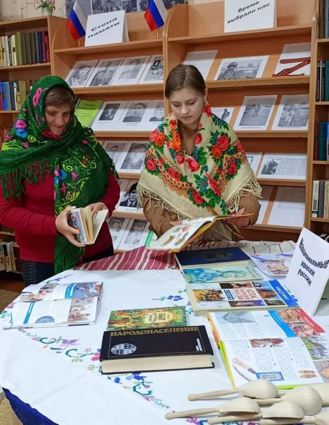 Это лишь малая часть того, что услышали гости выставок в библиотеках. За каждым экспонатом выставки‑инсталляции «Национальные краски России», за каждой фотографией и предметом быта стоят целые миры, запечатлённые в книгах. Там — голоса предков, мудрость традиций, красота обрядов и сила многовековой культуры.