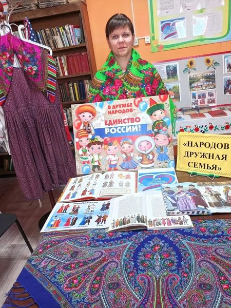 В честь праздника в сельских библиотеках-филиалах МБУК «Суражская районная межпоселенческая библиотека» организованы выставки-инсталляции «Национальные краски России», которые знакомят читателей: