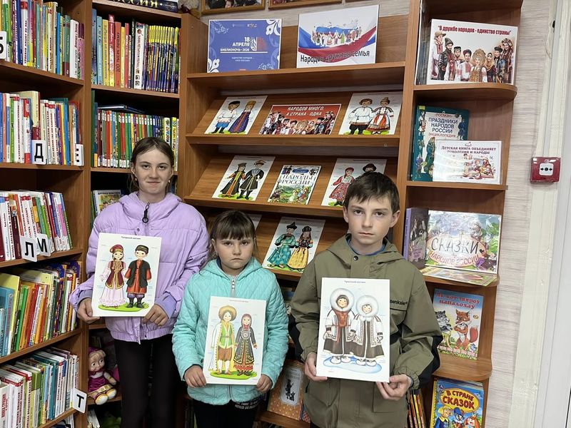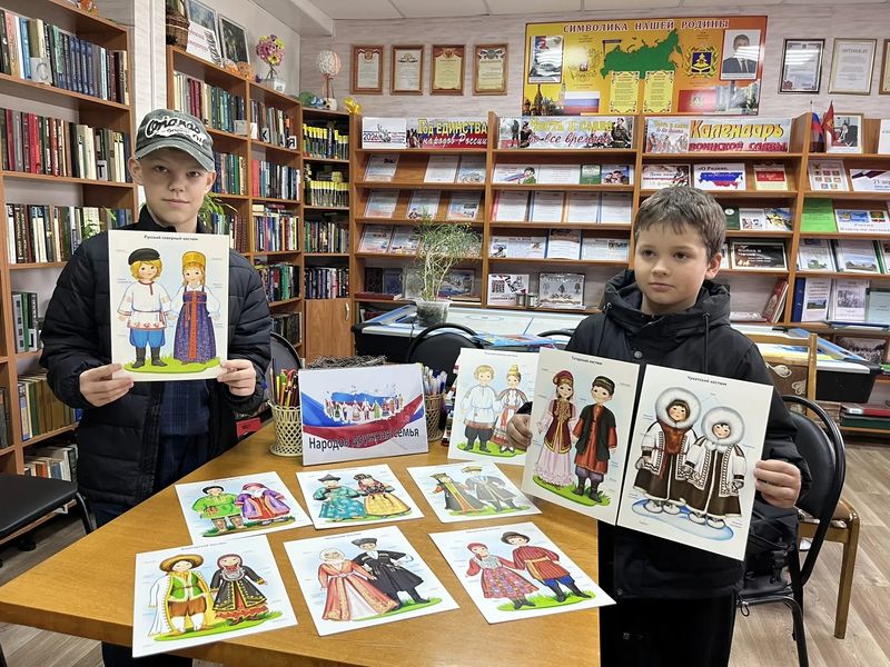 Тем временем в Калинковской сельской библиотеке состоялась литературно-игровая программа «Народов дружная семья» под вдохновляющим девизом «Единство народов — сила России!». Библиотекарь Выголко Н.С. увлекательно рассказала ребятам о национальностях, проживающих в России, их традициях, обычаях и национальных костюмах. Школьники узнали множество интересных фактов об истории, культуре и быте различных народов, населяющих нашу огромную страну.
