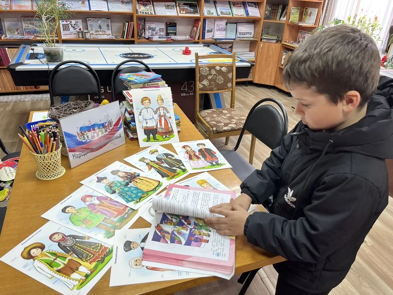 Особую атмосферу создала книжная выставка «В дружбе народов — единство России», организованная специально к этому событию. На ней были представлены книги о русском, белорусском и многих других народах, раскрывающие их историю, фольклор и культурные особенности. Юные читатели с интересом знакомились с изданиями, листали страницы и выбирали книги для дальнейшего чтения — ведь каждая из них обещала открыть новые грани удивительного мира многонациональной России.