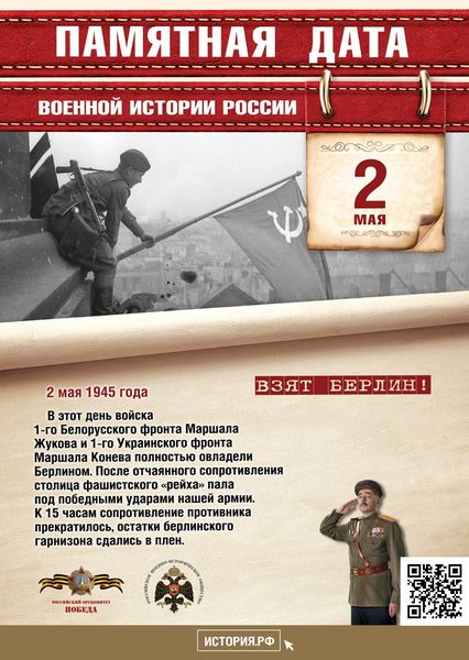 В этот день, 2 мая 1945 года, был взят Берлин.