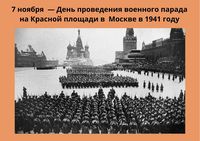 7 ноября - День воинской славы России - День проведения военного парада на Красной площади в Москве в 1941 г. Подробнее