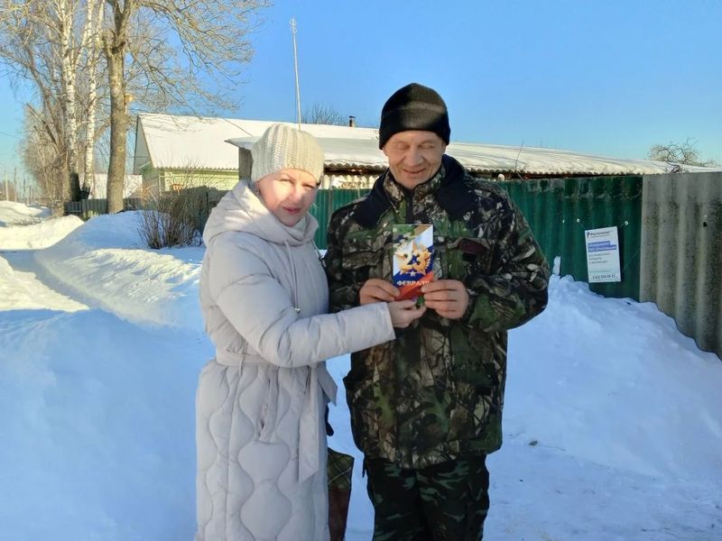 В сам праздничный день библиотекарь Высокоселищанской сельской библиотеки-филиала МБУК «Суражская районная межпоселенческая библиотека» Иванютина Т.И. совместно с Домом культуры провели акцию‑поздравление «Вам, защитники села». С улыбками и тёплыми словами организаторы встречали мужчин прямо на улицах — у автобусной остановки, возле сельского магазина. «С Днём защитника Отечества!» — звучало снова и снова, пока участникам вручали яркие открытки, созданные юными жителями села.