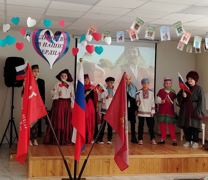 Завораживающим моментом праздничного мероприятия «Великая Россия – в единстве её сила!», которое прошло в рамках торжественного открытия Года единства народов России в муниципальном бюджетном учреждении культуры «Суражская районная межпоселенческая библиотека» стал выход на сцену учащихся Влазовичской средней школы в национальных костюмах народов России. Юные участники, олицетворяющие богатство этнокультурного многообразия России, шествовали по залу под проникновенные строки песни «Мы — единая страна». Этот художественный эпизод, пронизанный искренностью и патриотизмом, заставил каждого присутствующего ощутить: несмотря на различия в обычаях, языках и костюмах, всех нас объединяет одно — любовь к Великой России.