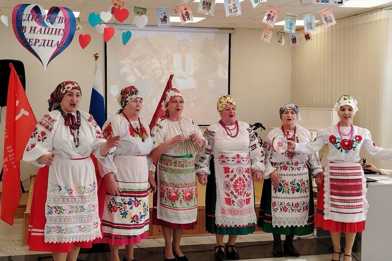 Музыка, русские народные песни стали тем волшебным мостом, который соединил сердца всех присутствующих. В исполнении ансамбля «Народные россыпи» Суражского педагогического колледжа имени А.С. Пушкина ( художественный руководитель С.О. Коваленко) прозвучала песня «Русь стозвонная». Юная исполнительница Пастухова София - обучающаяся Центра детского творчества очаровала всех присутствующих своим чистым, проникновенным голосом, исполнив русскую народную песню «Блины». Особую ноту в праздничное мероприятие внёс народный фольклорный ансамбль «Звонница» муниципального бюджетного учреждения культуры «Районный межпоселенческий культурно- досуговый центр» Суражского района. Руководитель ансамбля Юлия Ивановна Попелыш. Их песни, исполненные с подлинным мастерством и любовью к традициям, будто перенесли слушателей в далёкое прошлое, где каждый звук — это эхо предков, а каждая мелодия — нить, связывающая поколения.