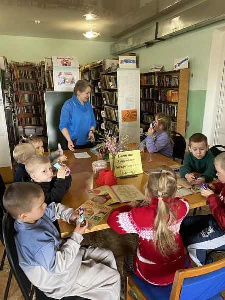Во Влазовичской сельской библиотеке-филиале МБУК "Суражская районная межпоселенческая библиотека" для самых маленьких читателей — воспитанников дошкольного отделения МБОУ Влазовичская СОШ — прошел урок православия "Пасхальной радости сияние".