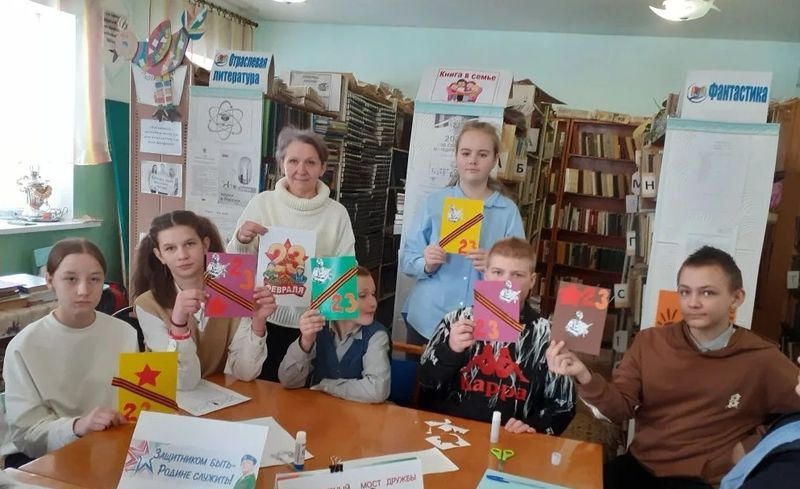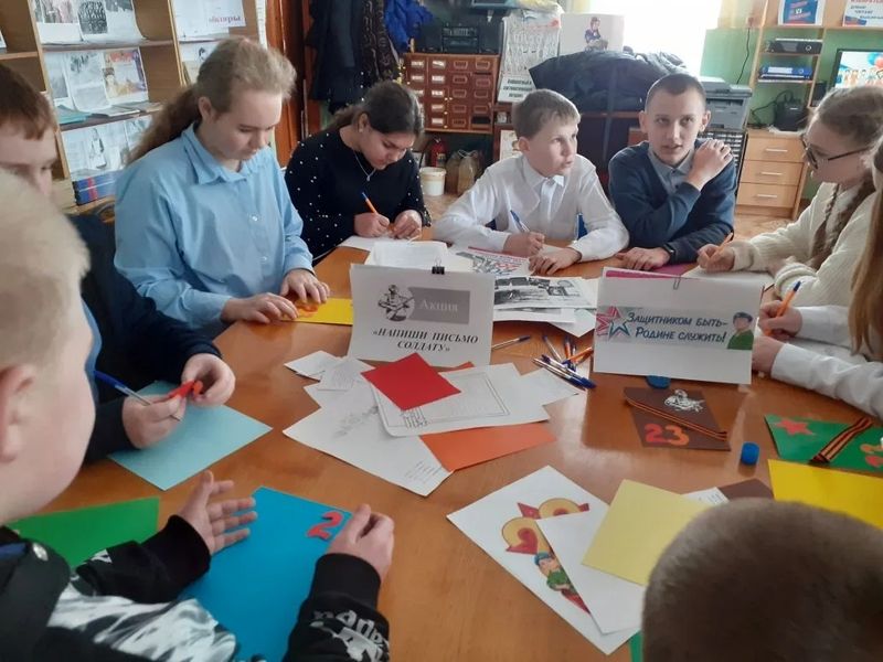 В целях патриотического воспитания и развития творческого потенциала , библиотекарь Влазовичской сельской библиотеки Верещагина Г.И. совместно с классным руководителем, учителем русского языка и литературы Влазовичской СОШ Титаревой Т.И. провели беседу с учащимися 6-7 классов - участниками акции о воинах, которые сейчас отдают долг Отечеству, о том, как им сейчас особенно требуется наша поддержка и теплые слова. После чего читатели с особым трепетом и нежностью сделали праздничные открытки, желая нашим защитникам мира и скорейшего возвращения домой.